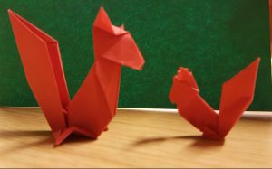 Julia hat mit Joshua Origami-Eichhörnchen gebastelt. Hier findet ihr die Anleitung.